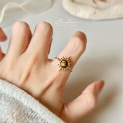 黃虎眼合金戒指(金托)#16
